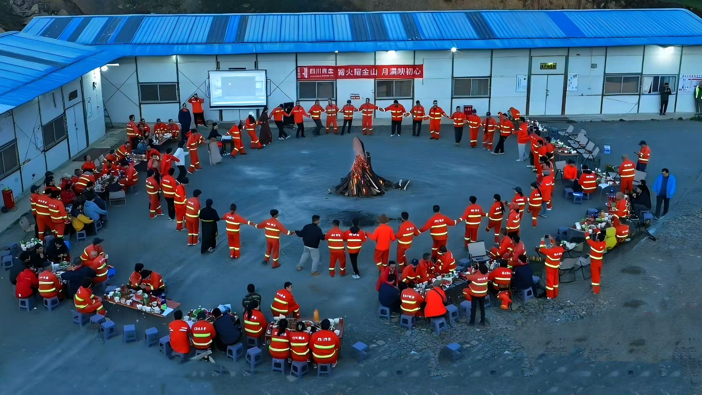 天幕为顶,繁星为灯,矿山一线员工相聚在这片雪域高原,共同点燃象征温暖与团结的篝火。