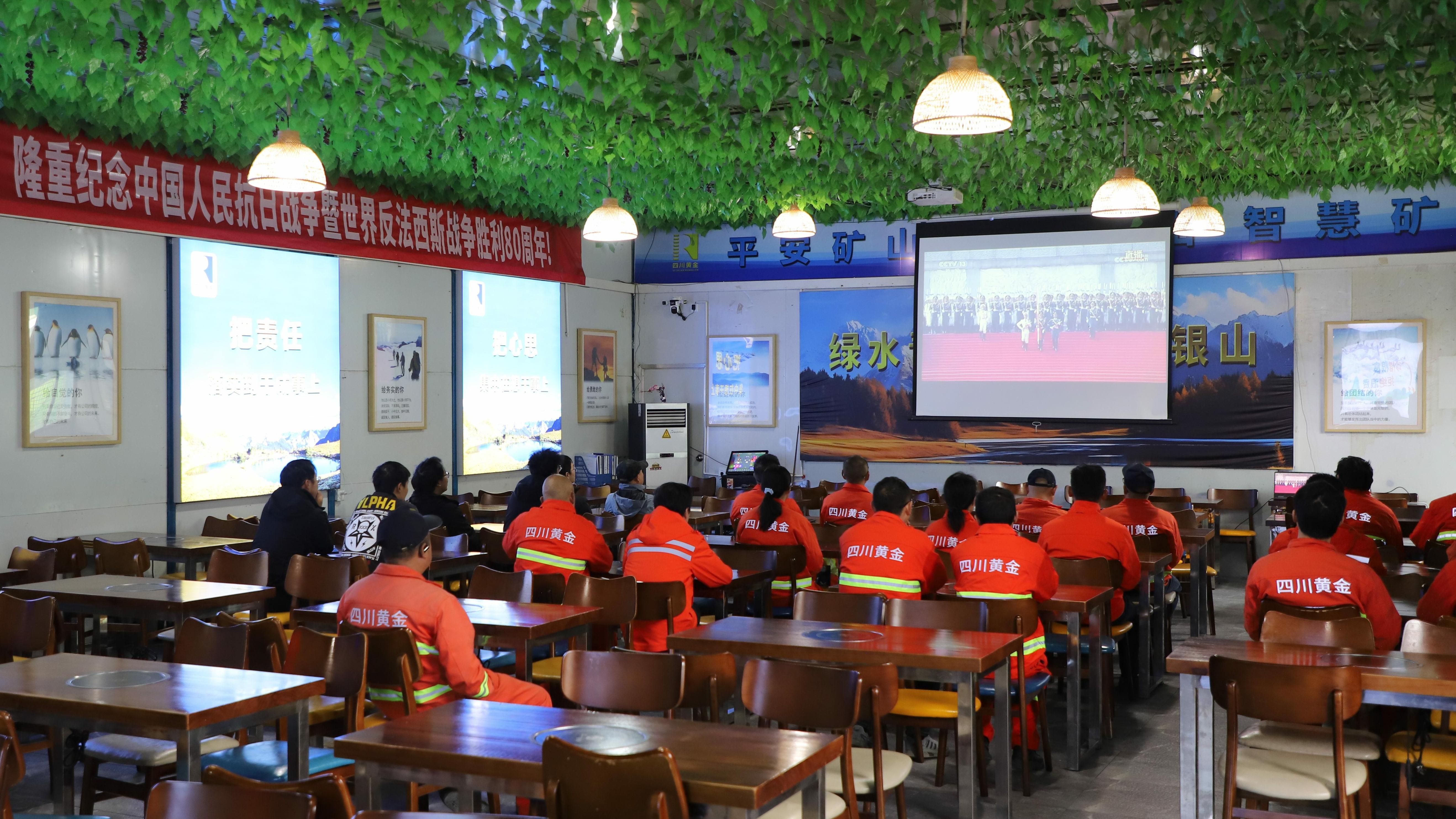四川作为抗日战争重要的大后方,为抗战胜利作出了不可磨灭的贡献。此次集中观看阅兵活动,是对全体员工一次深刻的爱国主义教育。 ▲梭罗沟金矿观看现场▲ 通过观看阅兵盛况,四川黄金员工深切感受到了国家日益强盛和民族复兴的磅礴气象,进一步认识到自身所肩负的责任和使命。 阅兵仪式结束后,员工反响热烈。大家一致表示,将阅兵所激发的爱国热情转化为实干动力,弘扬伟大抗战精神,坚定信心、迎难而上,以更加高昂的斗志和更加扎实的行动,在新征程中展现新担当、新作为。